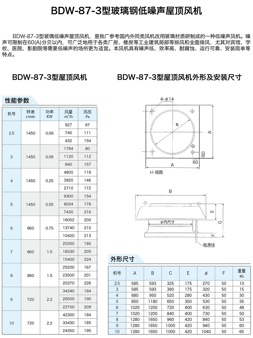 BDW-87-3型玻璃低噪聲屋頂風機,是我廠參考國內(nèi)外同類風機改用玻璃材質(zhì)研制成的一種低噪聲風機。