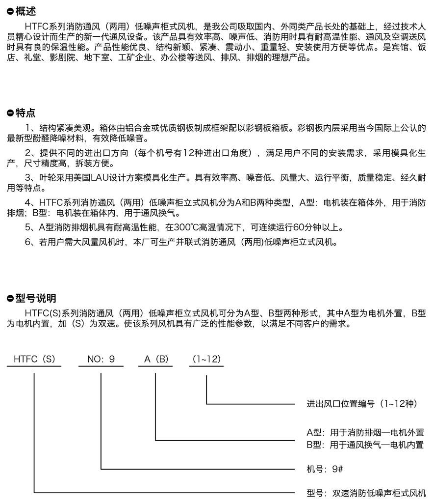 HTFC系列消防通風(兩用)低噪聲柜式風機,是我公司吸取國內(nèi)、外同類產(chǎn)品長處的基礎上,經(jīng)過技術(shù)人 員精心設計而生產(chǎn)的新一代通風設備。