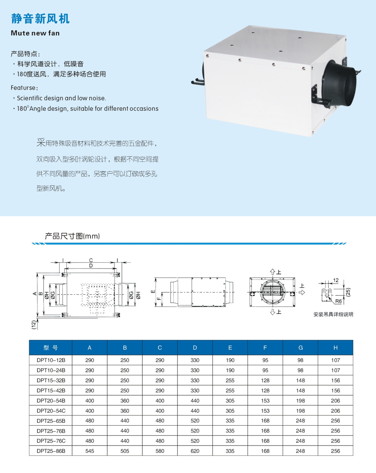 用特殊吸音材料和技術(shù)完善的五金配件, 雙向吸入型多葉滿輪設(shè)計,根據(jù)不同空間提供不同風(fēng)量的產(chǎn)品,另客戶可以〇做成多孔型新風(fēng)機(jī)。